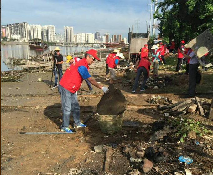 海口市委常委、市纪委书记李湖组织市、区、街道党员干部、部队官兵、社区群众开展清理卫生死角千人集中攻坚活动