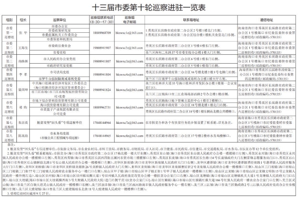 海口十三届市委第十轮巡察全部完成进驻,向社会公布巡察组联系方式