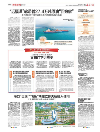 一、4月17日,海南日报第5版刊发《海口市纪检监察机关开展党史学习教育专题讲座》。