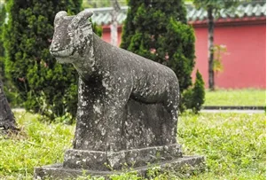 走近细细观看海瑞墓前神道石像生的每一尊神像,雕刻得古朴大方,惟妙惟肖,形神兼备,每一尊雕像都是一件完美的艺术品,更有其珍贵的文物价值。但不难发现,每一尊雕像和现实生活中的动物相比,低矮了二分之一,每种动物的各个部位也都按比例缩小了。海南出产火山岩石,就在距离海瑞墓西南不远处,有著名的石山镇马鞍岭火山群,石料的开凿在海南是不需要花费大价钱的。海瑞身为明朝的二品官员,仅他的俸禄和在当世的影响力,要开凿比这更为高大的石雕像应该不会成为大的问题,那为何他的石像生没有那么高大呢?