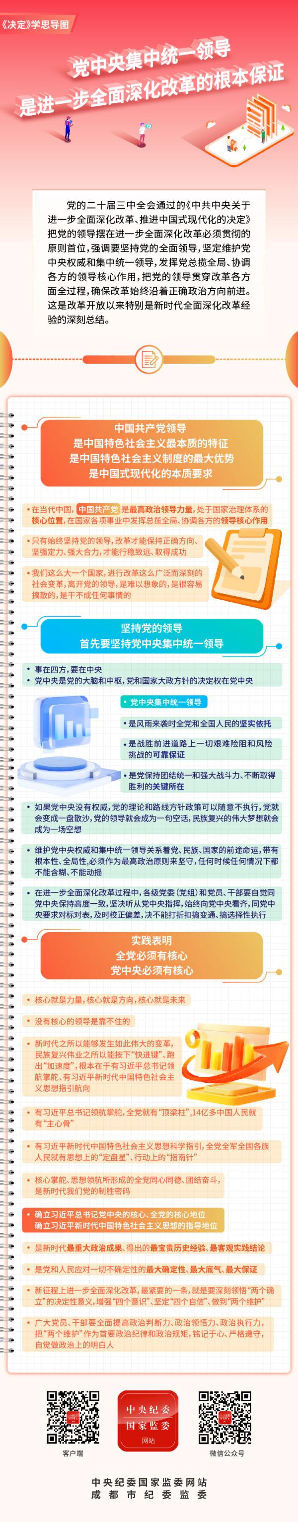 《决定》学思导图丨党中央集中统一领导是进一步全面深化改革的根本保证