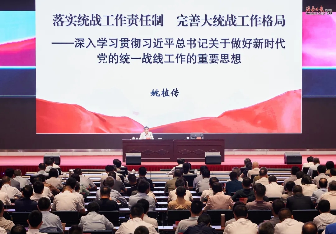 在研讨交流环节,部分省领导结合自身分管领域谈学习体会。冯飞要求把学习贯彻习近平文化思想和习近平总书记关于做好新时代党的统一战线工作的重要思想作为一项长期政治任务,坚持原原本本学、理论联系实际学、持续深入学,在深化内化转化上持续用力。他强调,要以文化强省建设为抓手推动实现物质文明和精神文明双提升,坚持不懈用党的创新理论凝心铸魂,牢牢掌握党对意识形态工作的领导权,完善“大宣传”工作格局,营造团结奋进的舆论氛围;大力促进文化事业和文化产业共同繁荣,保护好运用好传承好历史文化、革命文化、海洋文化、民俗文化,健全城乡公共文化服务体系,培育文化产业龙头企业,加快打造国际文化交流合作高地;广泛开展群众性精神文明创建活动,积极倡导崇德守法、诚信友善、积极向上、开放包容的社会风尚。要用好统一战线这个法宝,加快构建大统战工作格局,严格落实统战工作责任制,推动各级各部门增强统战意识,推动多党合作事业蓬勃发展,统筹抓好基层统战工作;广泛开展铸牢中华民族共同体意识宣传教育,不断开创民族宗教工作新局面;坚持和落实“两个毫不动摇”,促进非公有制经济健康发展、非公有制经济人士健康成长;持续深化琼港、琼澳、琼台和海外全面交流合作,为海南自贸港建设凝聚人心和力量。