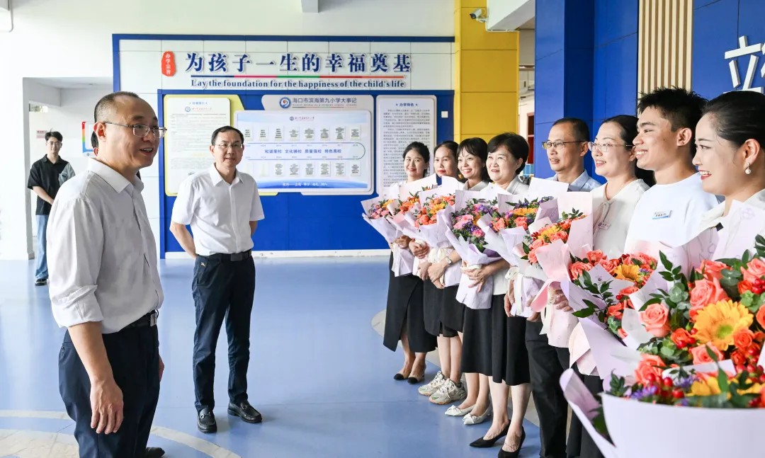 范少军、张勇分别前往海口市第二十五小学、人大附中海口实验学校、海口市五源河学校、海南华侨中学、海口市滨海第九小学,向教师们送上鲜花和节日祝福,关切询问他们的工作、生活情况,感谢大家坚守三尺讲台、潜心教书育人,为海口教育事业倾注了大量心血和汗水,勉励大家牢记为党育人、为国育才的初心使命,落实立德树人根本任务,大力弘扬教育家精神,做新时代“四有”好老师,用爱心与责任照亮孩子们前行的路,培养德智体美劳全面发展的社会主义建设者和接班人。