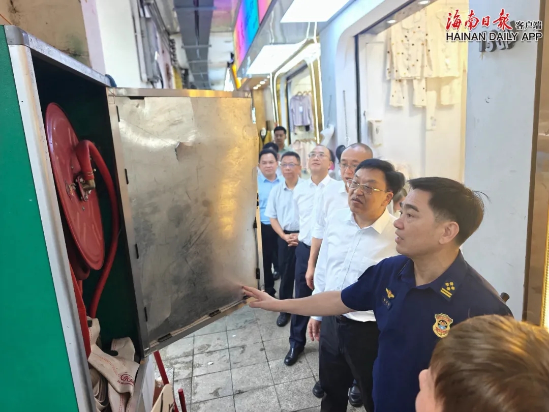 龙华区得胜沙路聚集大量服装批发商家,沿街商铺林立、人员密集。冯飞走进背街巷道检查,发现存在商户消防安全措施落实不到位等问题,电动自行车随意占用消防通道、空中弱电线路凌乱无序、占道经营等安全隐患问题突出。他要求,海口市有关部门和当地社区要立行立改、举一反三,彻底排查各类安全风险隐患,采取针对性整治措施,标本兼治提升老旧商业街区消防安全水平。