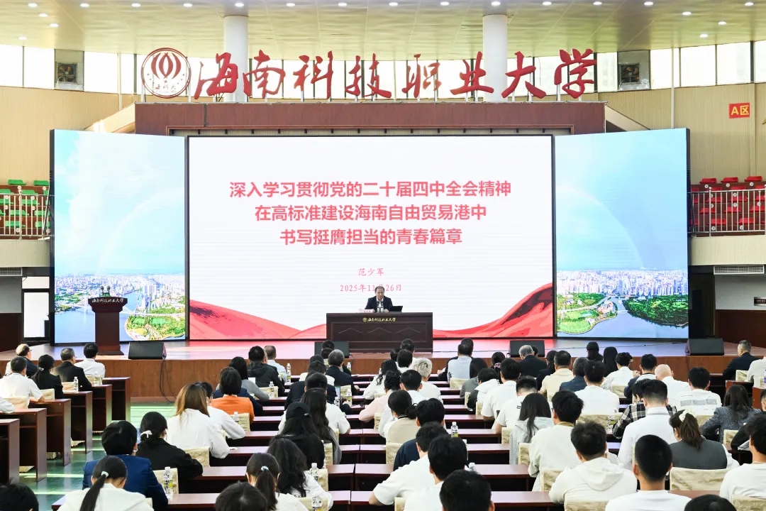 按照省委统一安排,11月26日,省委常委、海口市委书记范少军在海南科技职业大学以“深入学习贯彻党的二十届四中全会精神 在高标准建设海南自由贸易港中书写挺膺担当的青春篇章”为题,宣讲党的二十届四中全会精神并讲授思政课。