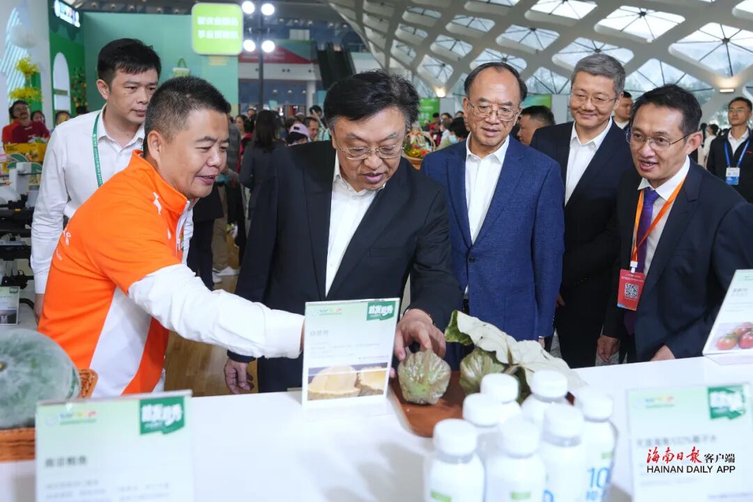冯飞指出,要推动农产品标准化生产,用好海南自由贸易港政策,创新加工工艺与方式,有效提高产品附加值,增强特色产品市场竞争力,丰富消费者选择。要充分发挥龙头企业引领带动作用,打造市场高度认可的地理标志品牌矩阵,完善联农带农机制,促进农业增效、农民增收。要加强创新链和产业链对接,加快发展种业服务业,积极培育和发展新质生产力,推进热带特色高效农业补链延链、优化升级。要持续提高办展能力和服务水平,突出国际化特色,丰富展会功能,优化主题策划和展区设置,打造特色农产品市场交易体系,不断扩大展会溢出效应。