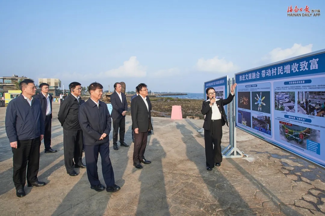 海南环岛旅游公路开通后,木棠镇神冲村与海南省旅游投资集团有限公司合作引入社会资本,以“渔旅融合”为抓手,通过“出租+流转”模式盘活村民闲置房屋,打造海南神冲滨海旅游度假区;光村镇泊潮社区以党建赋能和美乡村建设,推进人居环境整治,发挥致富带头人作用,打造多元休闲渔业经济,让渔民转型吃上了“旅游饭”。与会人员走进两地,观摩学习打造环岛旅游公路和美乡村的经验做法。