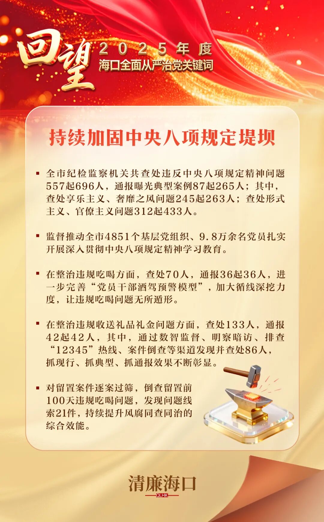 持续加固中央八项规定精神堤坝 以优良作风护航自贸港核心引领区建设——2025年海口全面从严治党综述①