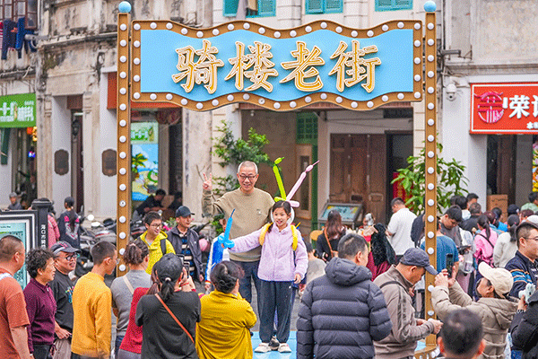 海南省海口市骑楼老街张灯结彩,南洋风情与新春节日气氛完美交融。老街内人潮涌动,市民游客穿梭其间,或打卡拍照,或选购年货。热闹的氛围中,欢声笑语不绝于耳,百年老街焕发出勃勃生机。(海南省海口市纪委监委供 康登淋 摄)