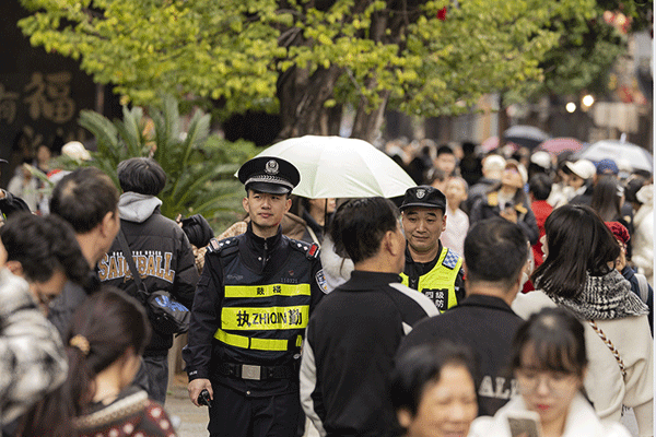 新春街巷的人潮里,藏着最浓的年味,也藏着最坚实的守护。他们穿梭在新春的热闹里,目光如炬,步履坚定,把平安写进每一寸街巷,成为节日里动人的风景。(福建省福州市鼓楼区五凤街道纪工委监察组供 赵寒 摄)