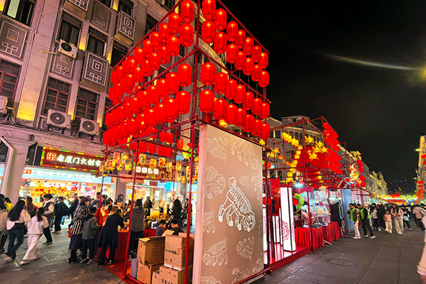 红灯笼映亮幸福年,在厦门市思明区中山路,装扮一新的新春氛围布置吸引无数市民游客打卡,美丽鹭岛年味愈发浓厚,充盈着新春美好气息。(厦门市思明区纪委监委供 林翔 摄)
