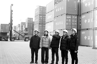 江苏省淮安市纪委监委组织纪检监察干部深入淮河入海水道二期、淮安港三期、淮安涟水国际机场三期等交通枢纽工程现场调研走访,推动解决相关问题,助力扩大高水平对外开放。图为近日,该市纪检监察干部走访了解淮安港枢纽运行情况,推动铁水联运项目加快建设。蔡百灵 摄