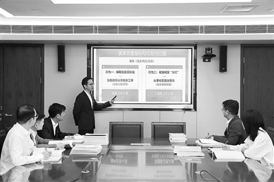图为成都高新区纪检监察工委工作人员围绕案情进行研讨。 刘思颖 摄