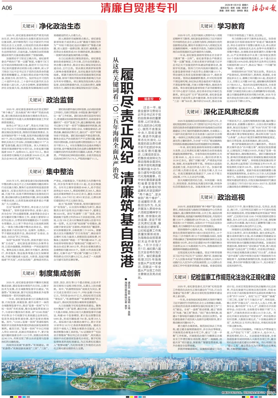 从这些关键词看二〇二五年海南全面从严治党 履职尽责正风纪 清廉筑基自贸港