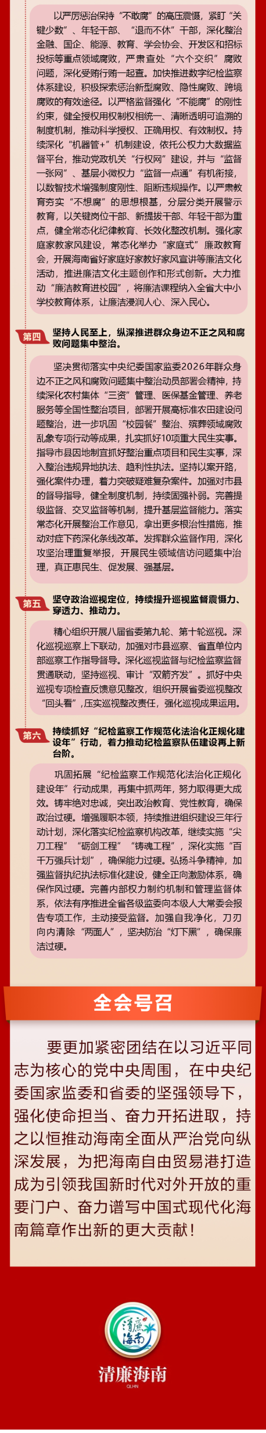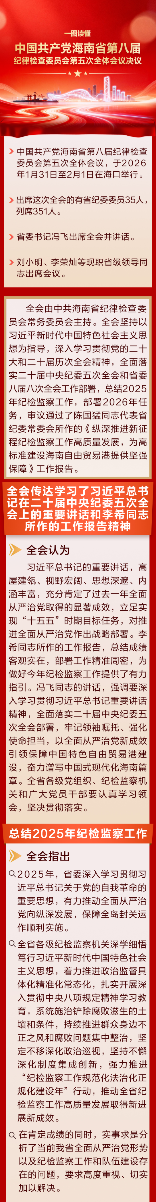一图读懂丨中国共产党海南省第八届纪律检查委员会第五次全体会议决议