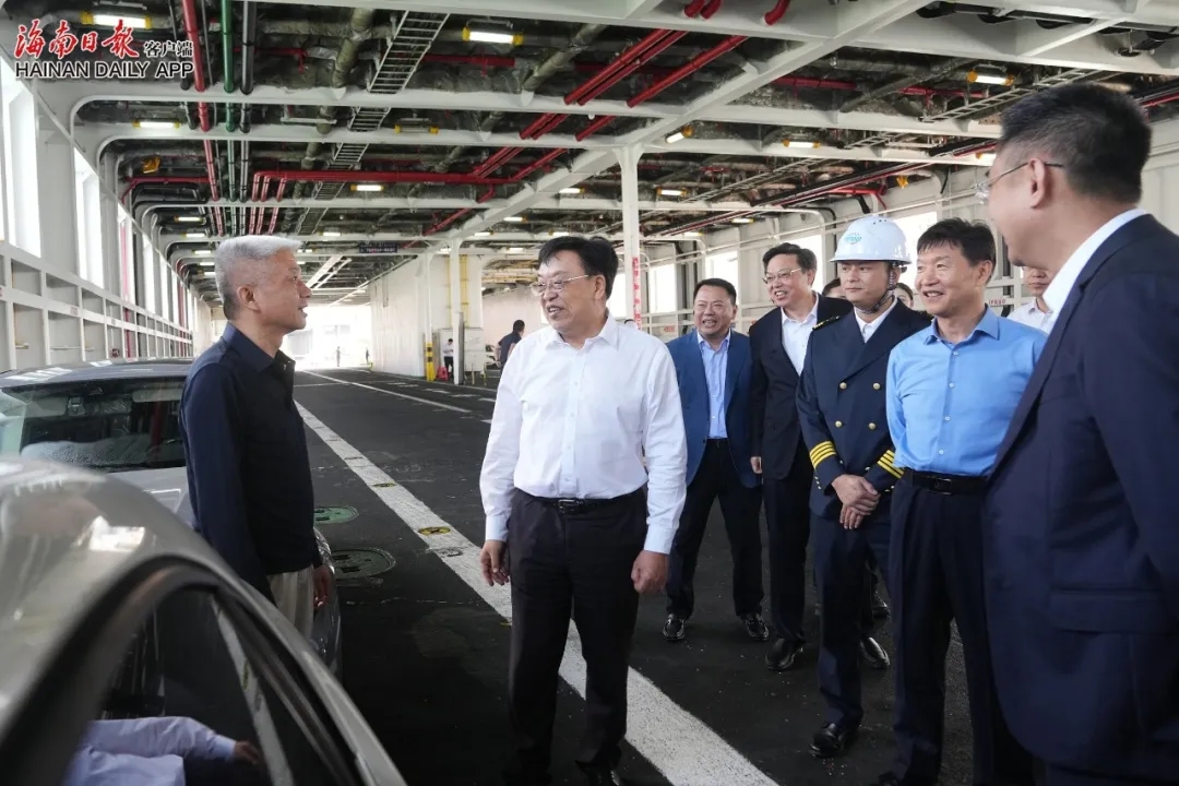 在新海港码头客运综合枢纽,冯飞、刘小明登上“双泰36”号客滚船察看现场作业情况,同返程车主深入交流,调研了解返程高峰运输保障工作,感谢一线工作人员和志愿者在春节期间的坚守付出和无私奉献,希望大家发扬连续作战精神,慎终如始抓好春运返程高峰服务保障工作。在交通运输部珠江航务管理局琼州海峡应急值班室和琼州海峡春运联合指挥部,冯飞、刘小明看望慰问交通运输部前方工作组及省政府春运工作专班、海口市联合指挥部工作人员,感谢交通运输部对琼州海峡春运工作的大力支持。冯飞指出,春节假期临近尾声,琼州海峡轮渡运输面临返程高峰压力。要坚持底线思维和极限思维,毫不松懈抓好安全生产,全力确保琼州海峡轮渡运输安全有序。要有效应对返程高峰,强化南北两岸协同联动,科学调配运力,在确保安全的前提下,优化作业流程,减少待渡时间,完善高峰期应急预案,及时高效处置突发问题,营造安全、高效、温馨的航运环境,确保旅客返程顺利。要立足长远提升通航效率,加快客滚船舶升级改造,打造安全、智慧、绿色航运体系。