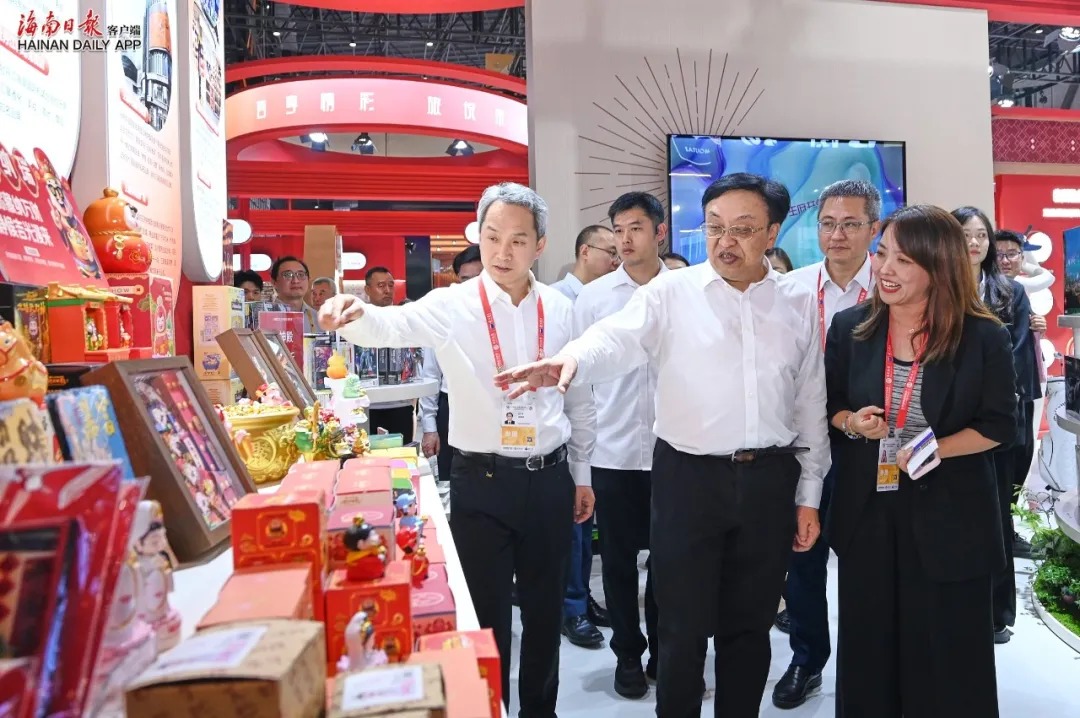 本届消博会的国潮出海展区、国货精品展区集中展示国货创新、扬帆全球的发展成果。冯飞观看竹藤、潮玩和国瓷甄选展示,走进北京、广东、浙江、海南等地展位,详细了解各地展品特色、产销情况及合作意向。他表示,消博会为国货品牌搭建了展示精品、走向世界的重要平台,期待各大国内企业坚守品质、持续创新,提升品牌核心竞争力,借助消博会平台拓宽海外市场,让更多国货精品走向全球。欢迎各地企业同海南深化交流合作,共促消费市场高质量发展,共享开放发展新机遇。